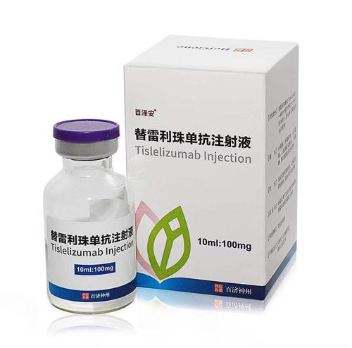 本说明书描述了在临床试验中观察到的可能由替雷利珠单抗引起的不良反应近似发生率。由于临床试验在各种不同条件下进行,因此在不同临床试验中观察到的不良反应的发生率不能直接比较,也可能不能反映临床实践中的实际发生率。安全性特性总结本产品的安全性信息来自三项单药临床研究(BGB-A317.001[N=451],BGB-A317-102[N=300],和BGB-A317-203[N=70]),共涉及821例患者.肿瘤类型包括非小细胞肺癌(N=105)、食道癌(N=81)、胃癌(N=78)、经典型椹奇佥淋巴瘤(N=70)、肝细胞癌(N=69)、结直肠癌(N=54)、卵巢癌(N=51)、尿路上皮癌(N=39)、肾细胞癌(N=37)、黑色素瘤(N=36)、乳腺癌(N=32)、头颈部鳞状细胞癌(N=29)、鼻咽癌(N=27)、胆管癌(N=18)、胰腺癌(N=10)、小细胞神经内分铋癌(N=10)、肉瘤(N=10)、间皮瘤(N=9)、宫颈癌(N=7)、其他类型肿瘤(N=49)。上述研究中383例接受了200mg每3周1次的替雷利珠单抗治疗,355例接受了5mg/kg每3周1次的替雷利珠单抗治疗,各有26例分别接受了2mg/kg或5mg/kg每2周1次的替雷利珠单抗治疗,21例接受了2mg/kg每3周1次的替雷利珠单抗治疗,7例接受了10mg/kg每2周1次的替雷利珠单抗治疗,3例接受了0.5mgkg每2周1次的替雷利珠单抗治疗。替雷利珠单抗中位给药时间为16周(范围:0.6~162周),35.7%的患者接受替雷利珠单抗治疗≥6个月,20.0%的患者接受替雷利珠单抗治疗≥12个月。接受替雷利珠单抗治疗的821例患者中所有级别的不良反应发生率为71.0%,发生率≥10%的不良反应包括:疲乏,皮疹,甲状腺功能减退症,丙氨酸氨基转移酶升高和天门冬氨酸氨基转移酶升高。3级及以上不良反应发生率为18.4%,发生率≥1%的包括:γ-谷氨酰转移酶升高、肺部炎症、天门冬氨酸氨基转移酶升高、丙氨酸氨基转移酶升高、重度皮肤反应、贫血。